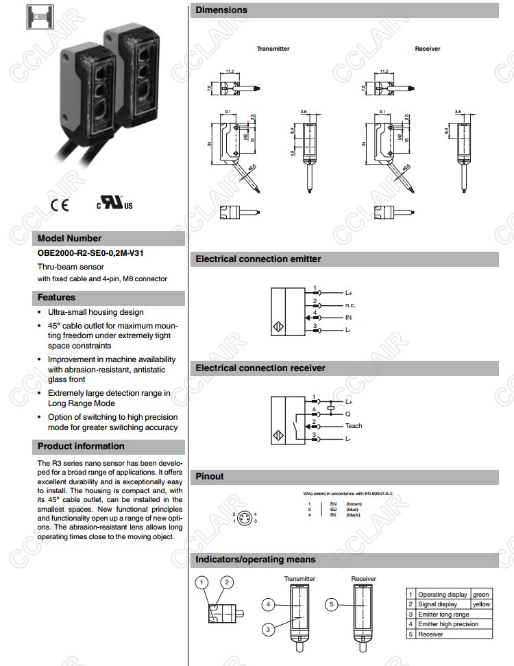 OBE2000-R2-SE0-0,2M-V31,OBE2000-R2-SE0-Y264206,對(duì)射型傳感器