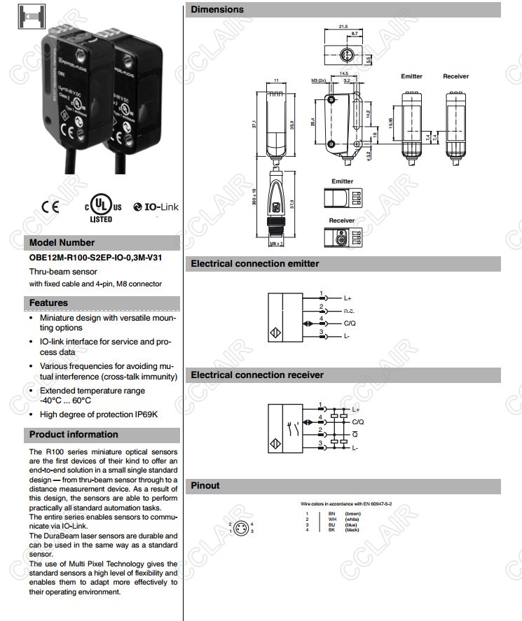 OBE12M-R100-S2EP-IO-0,3M-V1,OBE12M-R100-S2EP-IO-0,3M-V31,OBE12M-R100-SEP-IO-0,3M-V3,對射型傳感器 |
