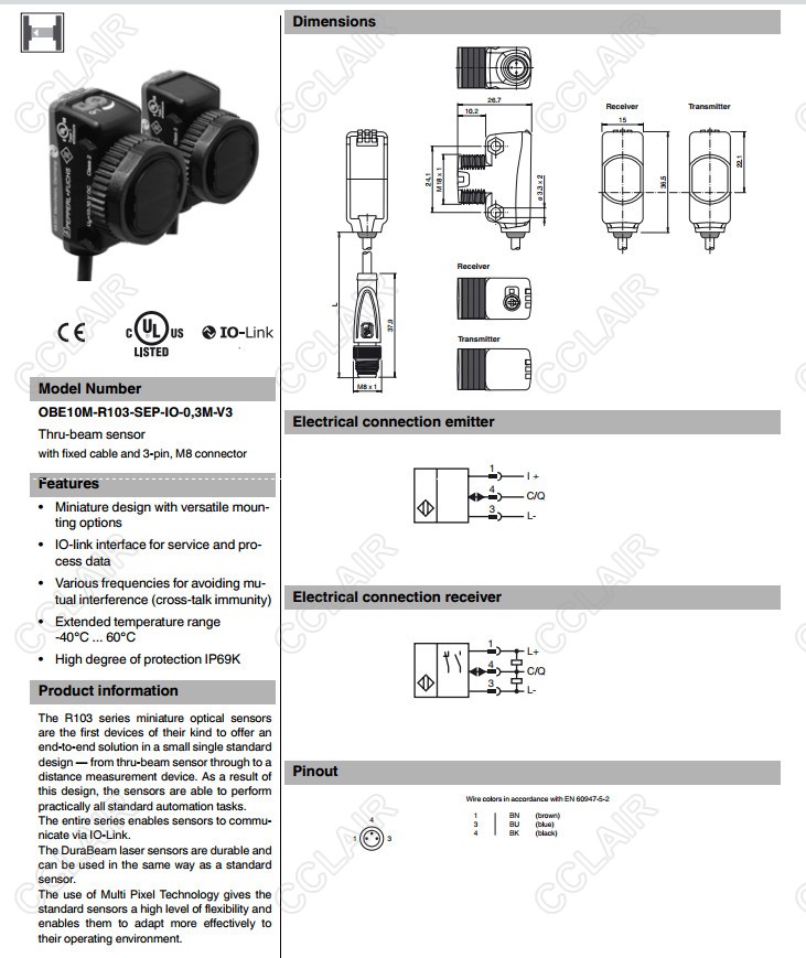 OBE10M-R103-S2EP-IO-V31,OBE10M-R103-SEP-IO-0/3M-V3,OBE10M-R103-SEP-IO-V3,對射型傳感器