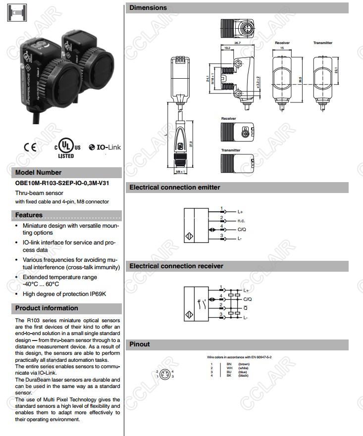 OBE10M-R103-S2EP-IO-0/3M-V1,OBE10M-R103-S2EP-IO-0/3M-V31,對(duì)射型傳感器
