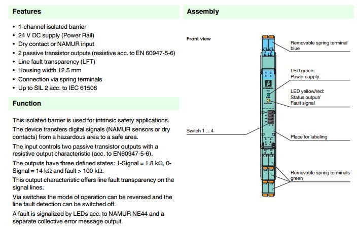 KCD2-SON-Ex1.SP,開關(guān)量輸入安全柵