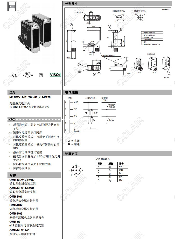 M12/MV12-F1-IR/76b/82b/124/128,M12/MV12-F1/76b/82b/124/128,對射型傳感器