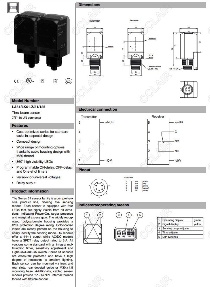 LA61/LK61-Z/31/135,對(duì)射型傳感器