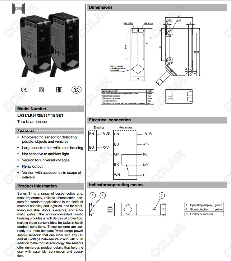 LA31/LK31/16/25/31/115,LA31/LK31/25/31/115/SET,LA31/LK31/25/31/115/SET2,對射型傳感器