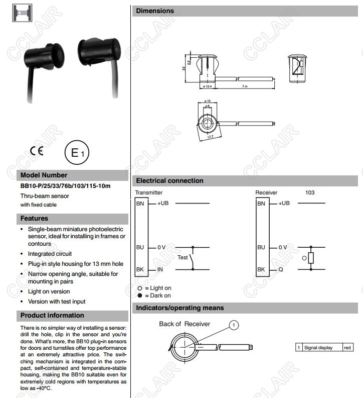 BB10-P/25/33/76b/103/115-10m,BB10-P/25/33/76b/103/115e,對射型傳感器