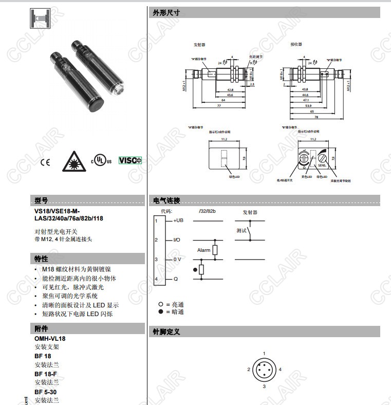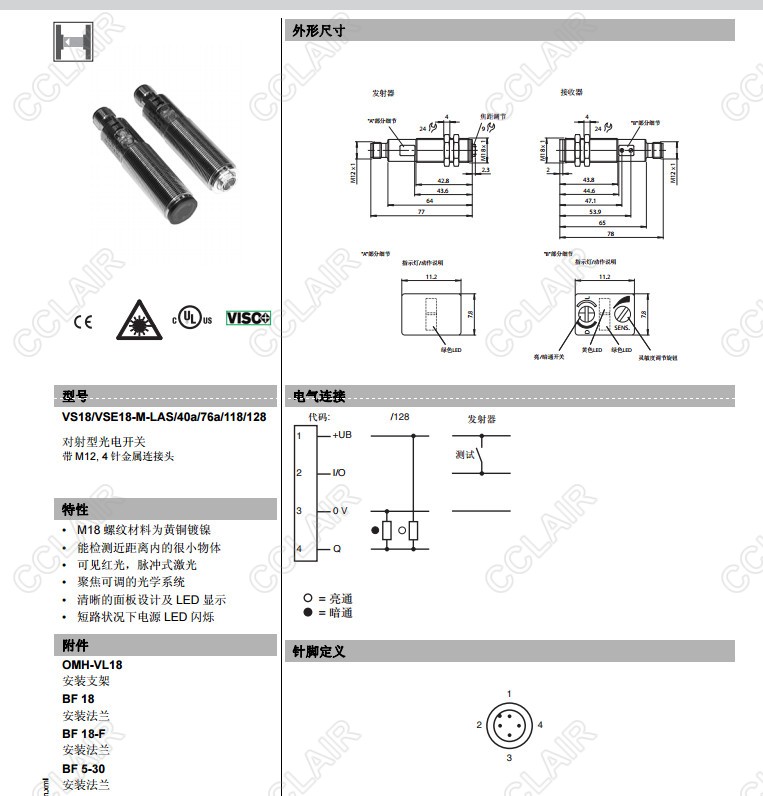 VS18/VSE18-M-LAS/32/40a/76a/82b/118,VS18/VSE18-M-LAS/40a/76a/118/128,對(duì)射型傳感器