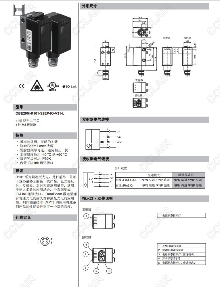 OBE20M-R101-S2EP-IO-V31-L,對(duì)射型傳感器
