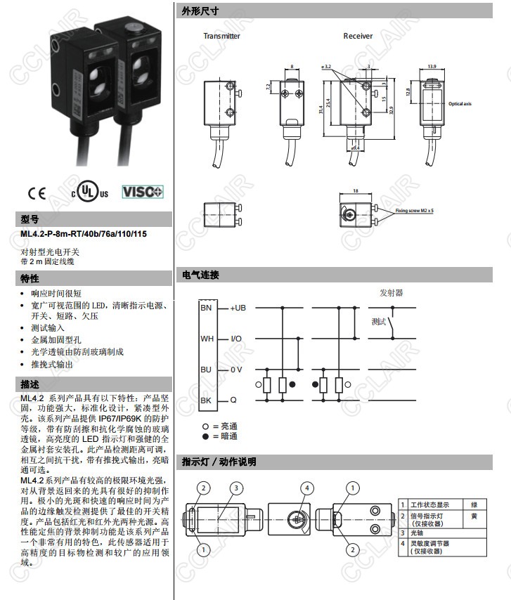 ML4.2-P-8m-RT/40b/76a/110/115,對射型傳感器
