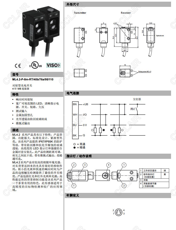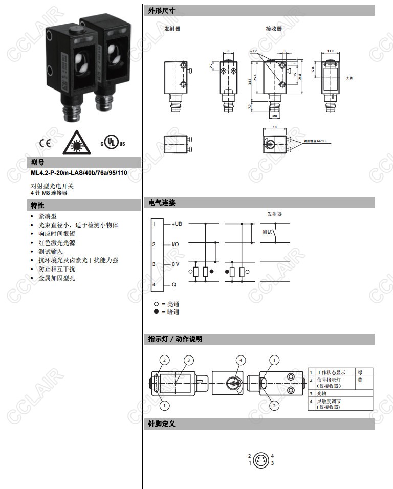 ML4.2-P-20m-LAS/40b/76a/95/110,ML4.2-P-8m-RT/40b/76a/95/110,對射型傳感器