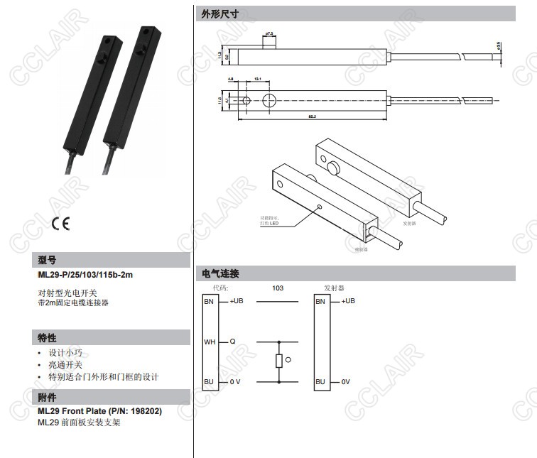ML29-P/25/103/115b-2m,ML29-P/25/103/115b-2m,對射型傳感器