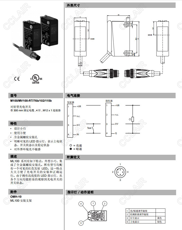 M100/MV100-RT/76b/102/115b,對射型傳感器