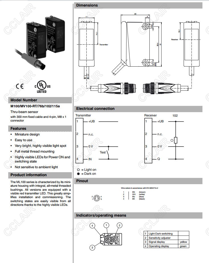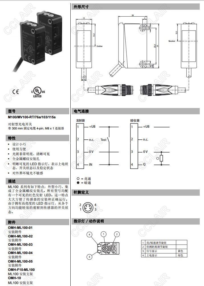 M100/MV100-RT/76a/103/115a,M100/MV100-RT/76b/102/115a,對(duì)射型傳感器
