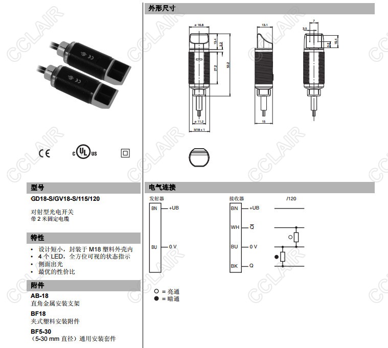GD18-S/GV18-S/115/120,GD18-S/GV18-S/25/102/115,對(duì)射型傳感器