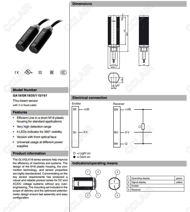 GA18/GK18/25/115/161,對(duì)射型傳感器