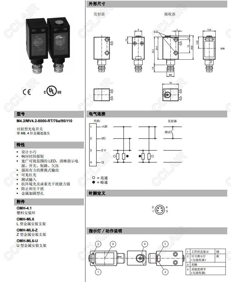 M4.2/MV4.2-8000-RT/76a/95/110,對(duì)射型傳感器