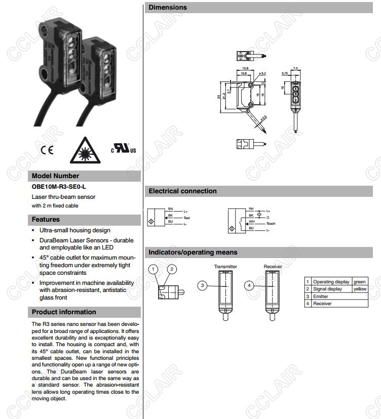 OBE1000-R3-SE0-L,OBE10M-R3-SE0-L,對射型傳感器