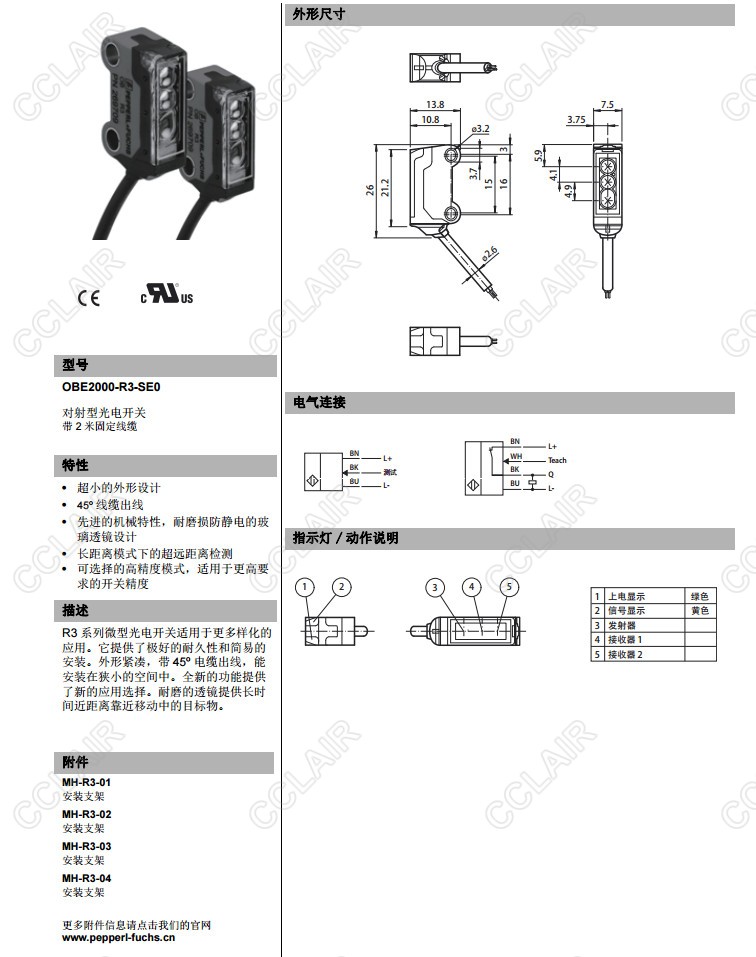 OBE2000-R3-SE0,對(duì)射型傳感器