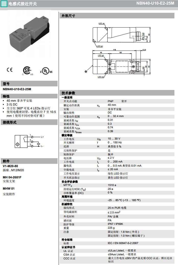 NBN40-U10-E2,NBN40-U10-E2-25M感應式傳感器