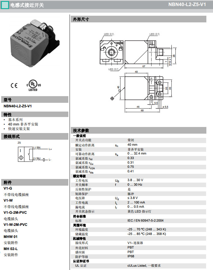 NBN40-L2-Z0-V1,NBN40-L2-Z4-V1,NBN40-L2-Z5-V1感應(yīng)式傳感器