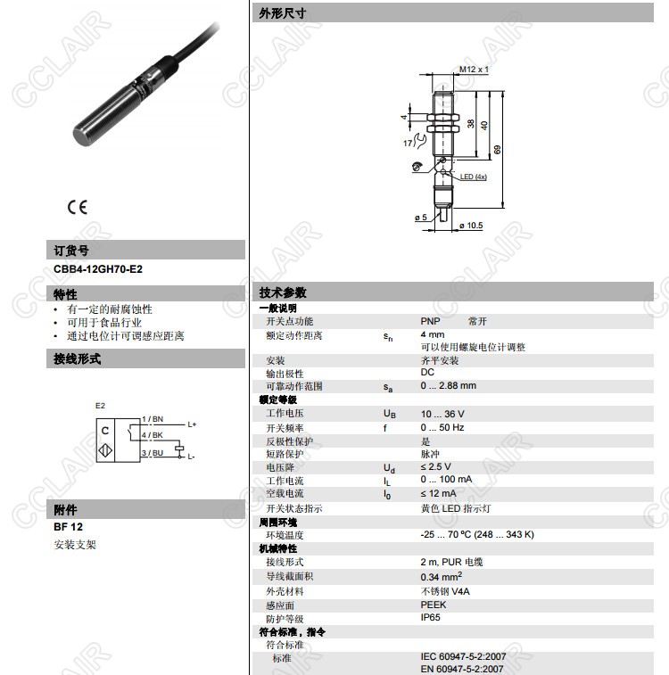 CBB4-12GH70-E2,電容式接近開關(guān)