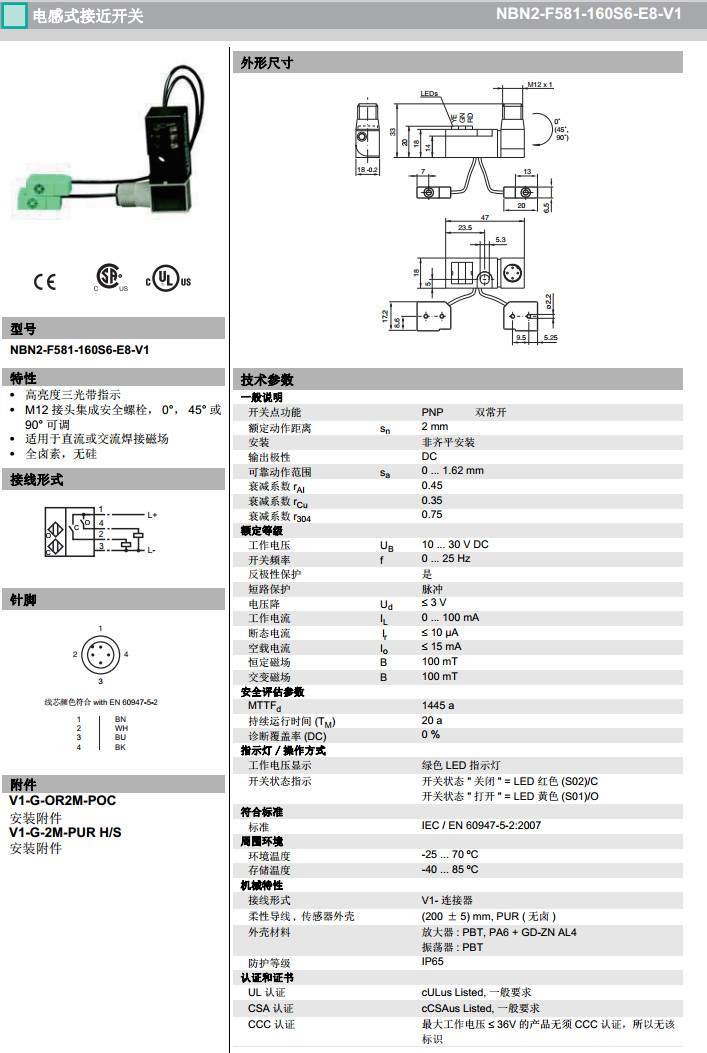 NBN2-F581-100S6-E8-V1,NBN2-F581-160S6-E8-V1,NBN2-F581-200S6-E8-V1感應式傳感器