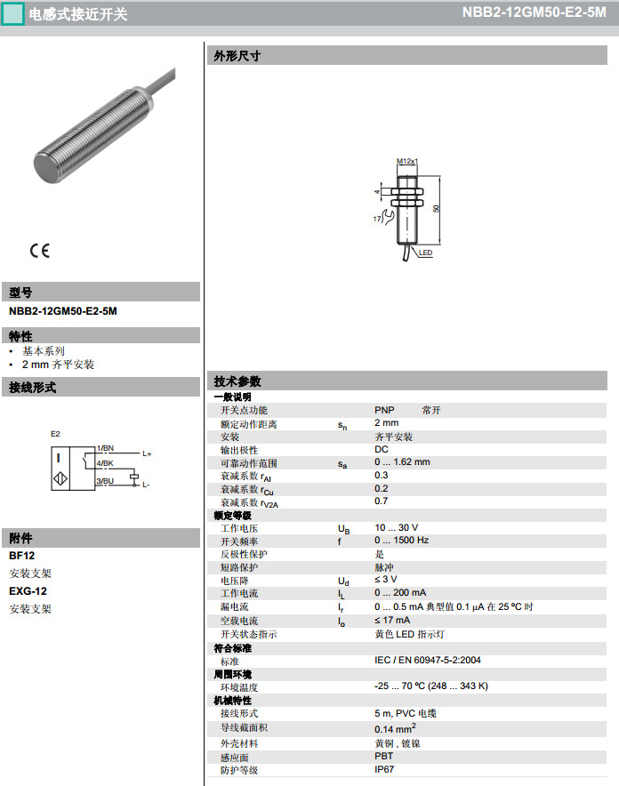 NBB2-12GM50-E2-25M,NBB2-12GM50-E2-3M,NBB2-12GM50-E2-5M