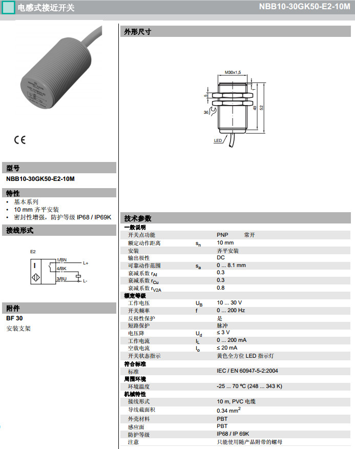 NBB10-30GK50-E0,NBB10-30GK50-E2,NBB10-30GK50-E2-10M感應(yīng)式傳感器