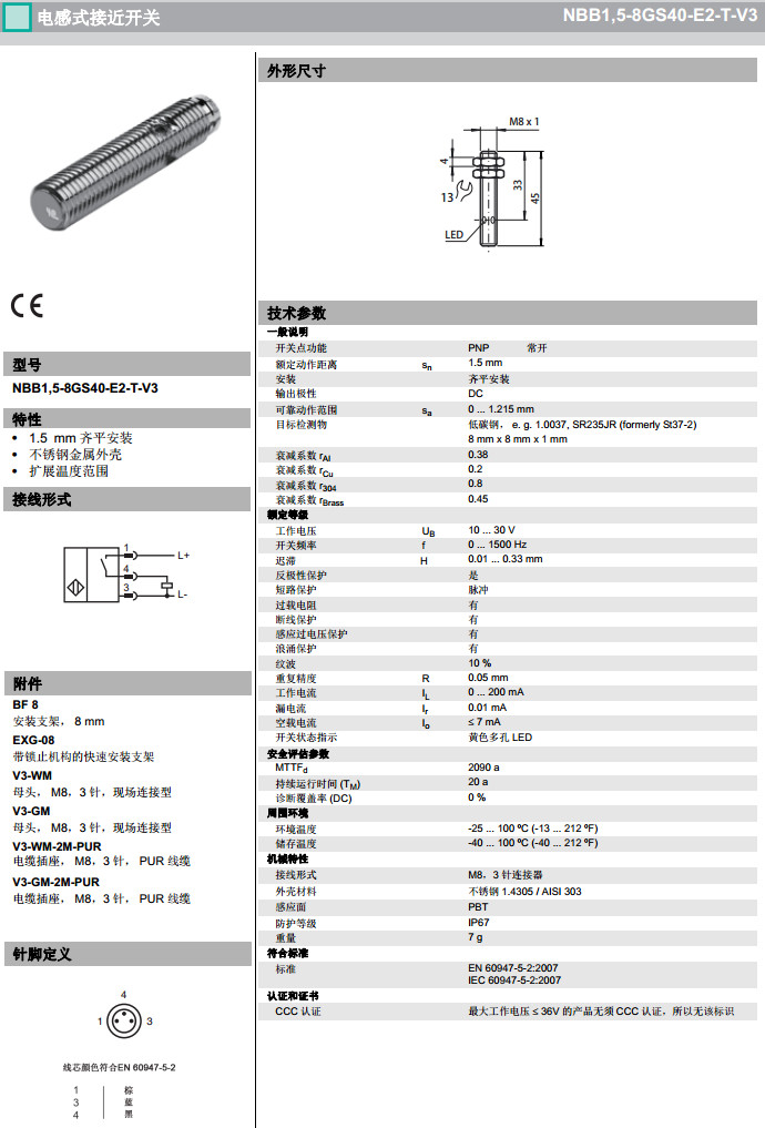 NBB1,5-8GS40-E2-T-V3感應(yīng)式傳感器