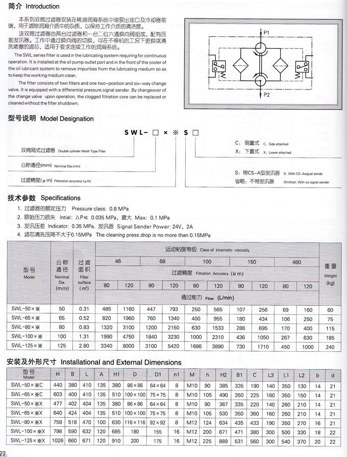 SWL-50*80,SWL-50*120,SWL-65*80,SWL-65*120,SWL-80*80,SWL-80*120,過濾器