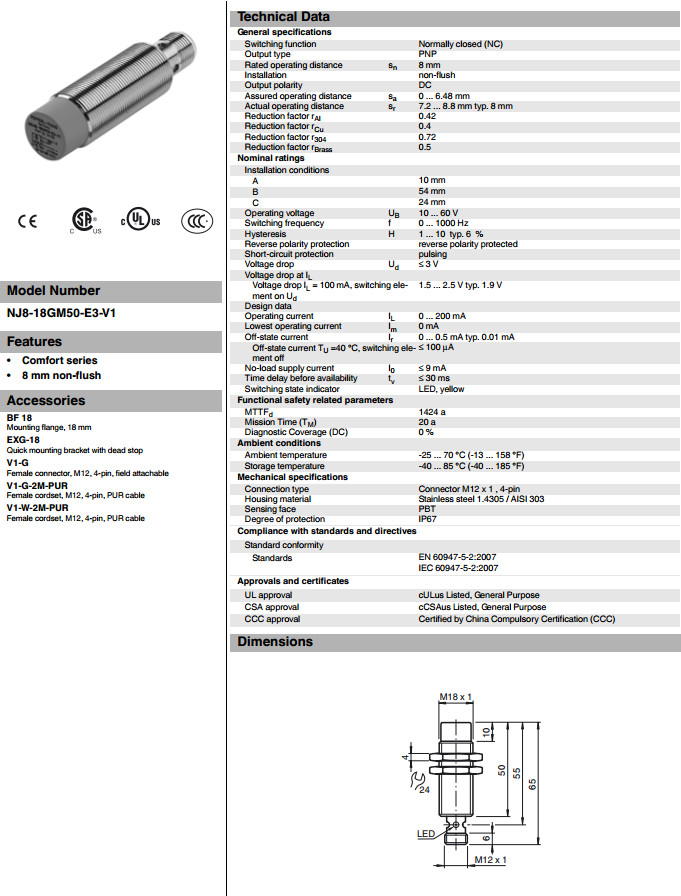 NJ8-18GM50-E3-V1電感式接近開關(guān)