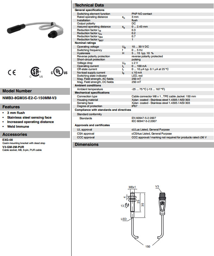 NMB3-8GM35-E2-C-150MM-V3電感式接近開關