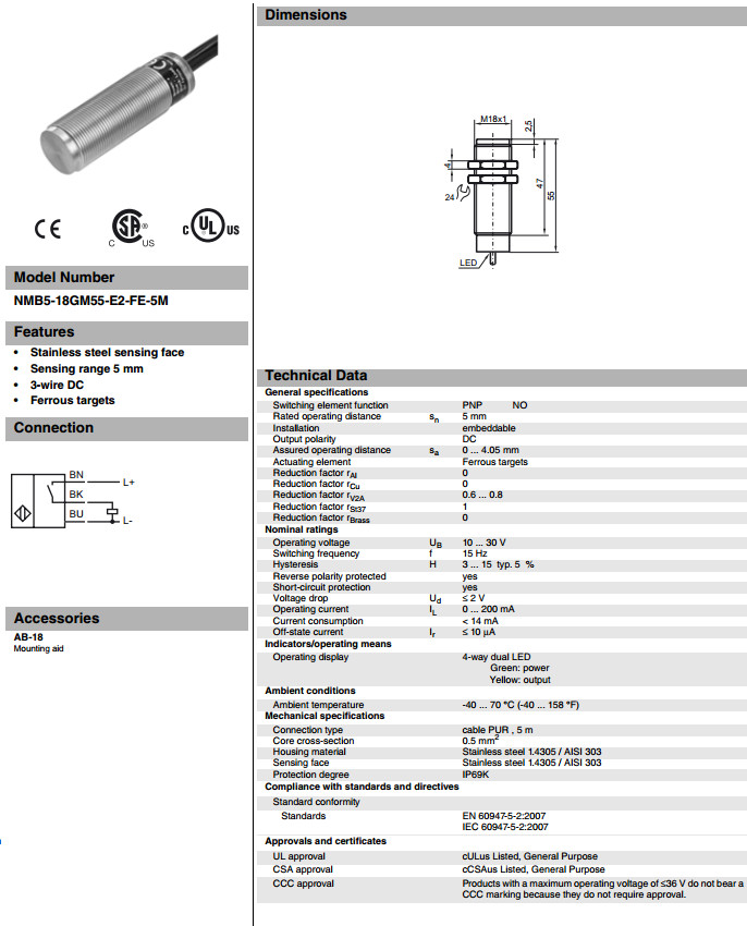 NMB5-18GM55-E2-FE-5M電感式接近開關(guān)