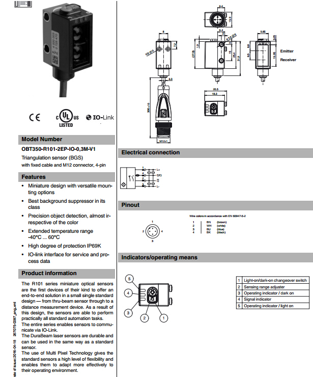 OBT350-R101-2EP-IO-0,3M-V1,漫反射型傳感器