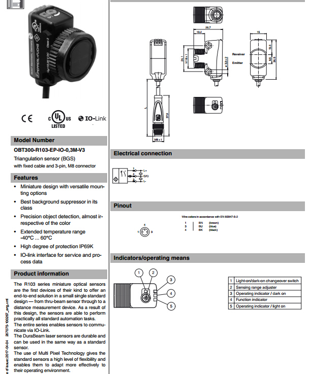OBT300-R103-EP-IO-0,3M-V3,漫反射型傳感器