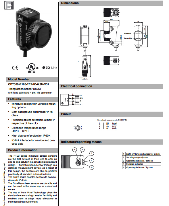 OBT300-R103-2EP-IO-0,3M-V31,漫反射型傳感器
