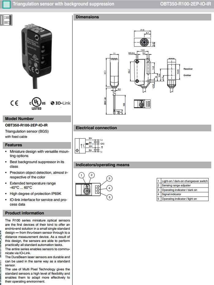 OBT350-R100-2EP-IO-IR漫反射型傳感器
