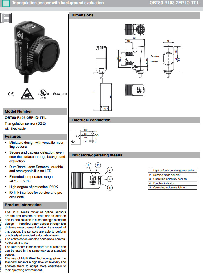 OBT80-R103-2EP-IO-1T-L漫反射型傳感器