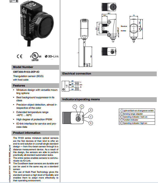 OBT300-R103-2EP-IO,漫反射型傳感器