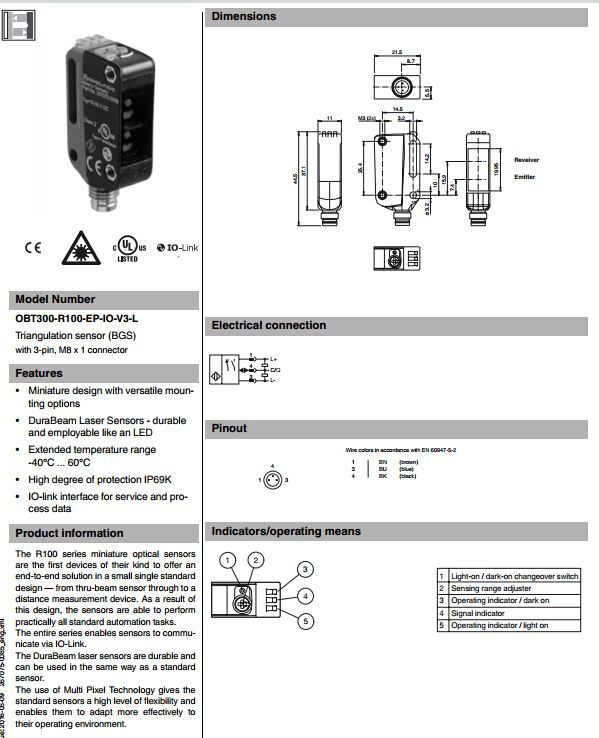 OBT300-R100-EP-IO-V3-L,漫反射型傳感器