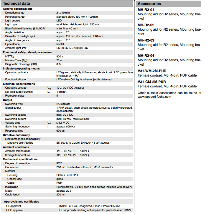 OBT40-R2-E2-0,2M-V31漫反射型傳感器