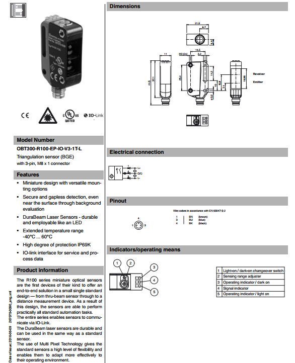 OBT300-R100-EP-IO-V3-1T-L,漫反射型傳感器