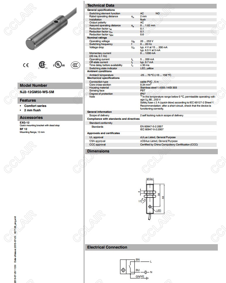 NJ2-12GM50-WS-5M,電感式接近開關(guān)