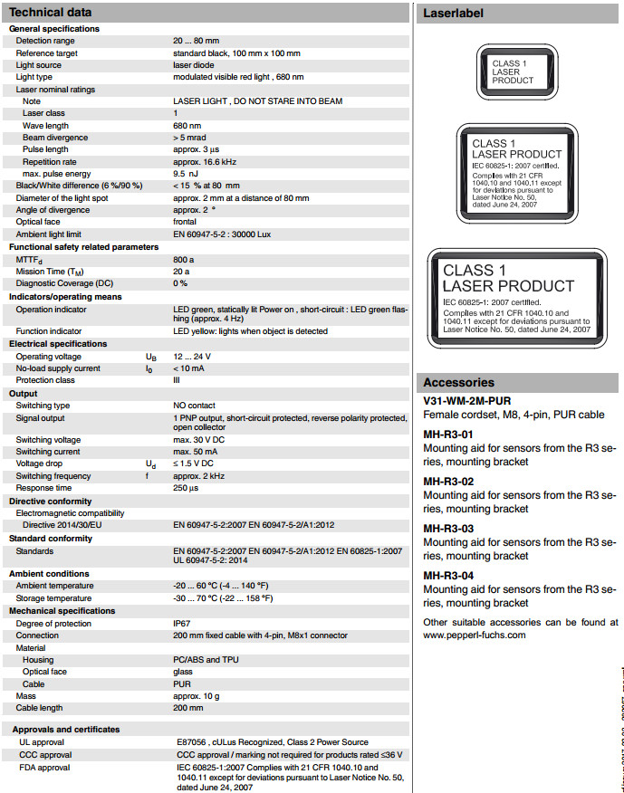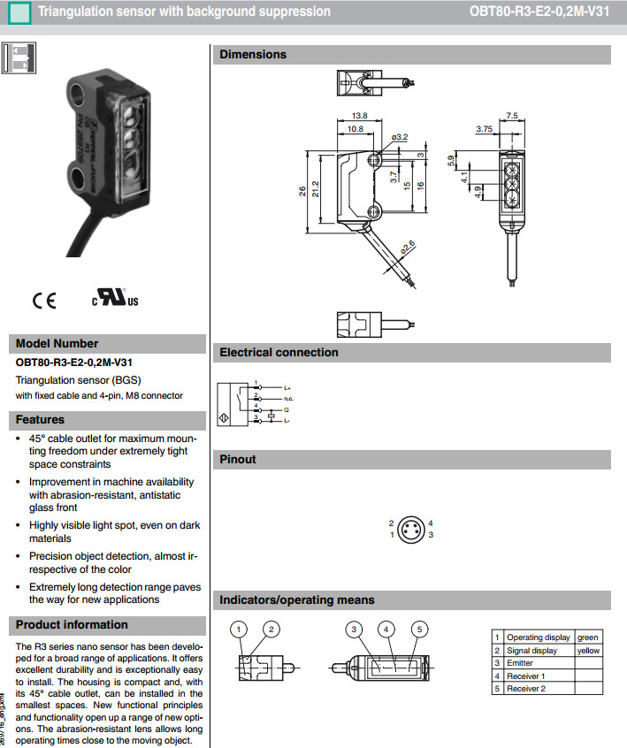 OBT80-R3-E2-0,2M-V31,OBT80-R3-E2-0,2M-V31-L漫反射型傳感器