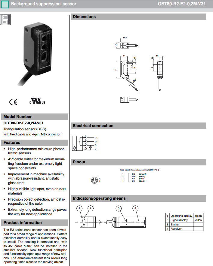 OBT80-R2-E2-0,2M-V31,OBT80-R3-E2-0,2M-V3-L漫反射型傳感器