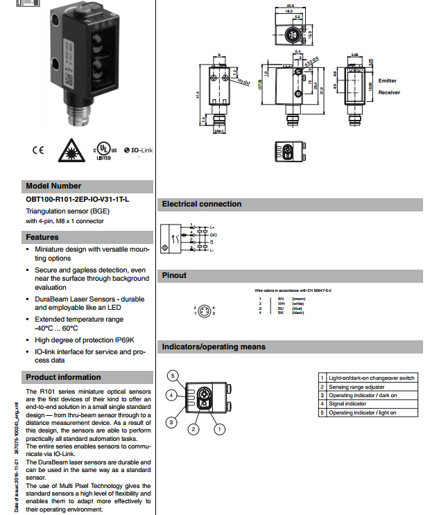 OBT100-R101-2EP-IO-V31-L,漫反射型傳感器