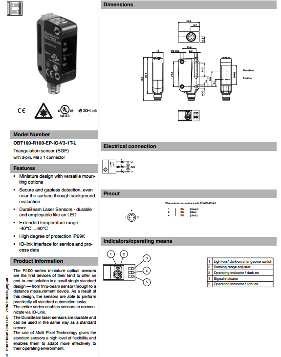 OBT100-R100-EP-IO-V3-1T-L,漫反射型傳感器