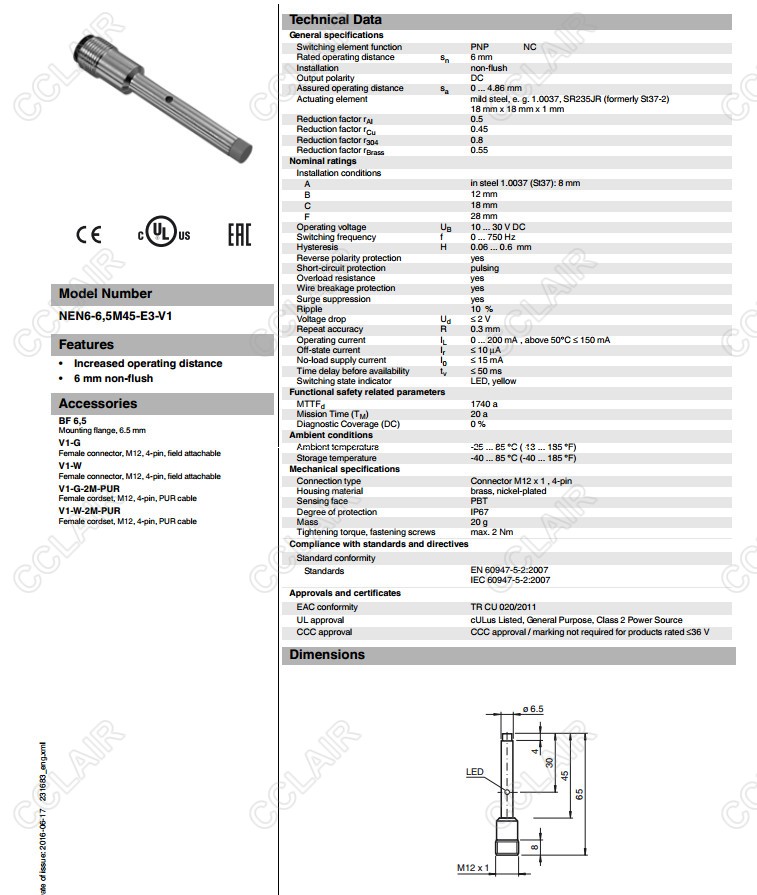 NEN6-6,5M45-E3-V1,電感式接近開關(guān)