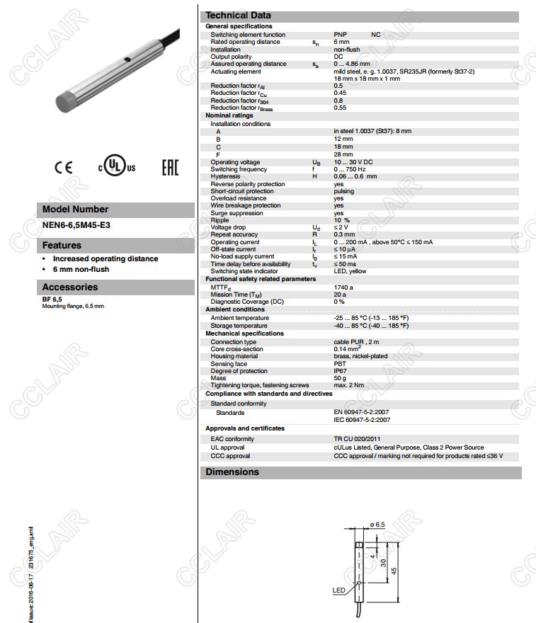 NEN6-6,5M45-E3,電感式接近開關
