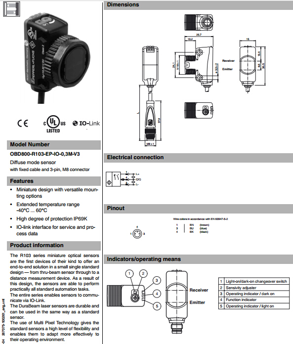 OBD800-R103-EP-IO-0,3M-V3,漫反射型傳感器