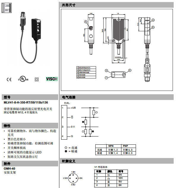 MLV41-8-H-350-RT/59/115b/136,漫反射型傳感器